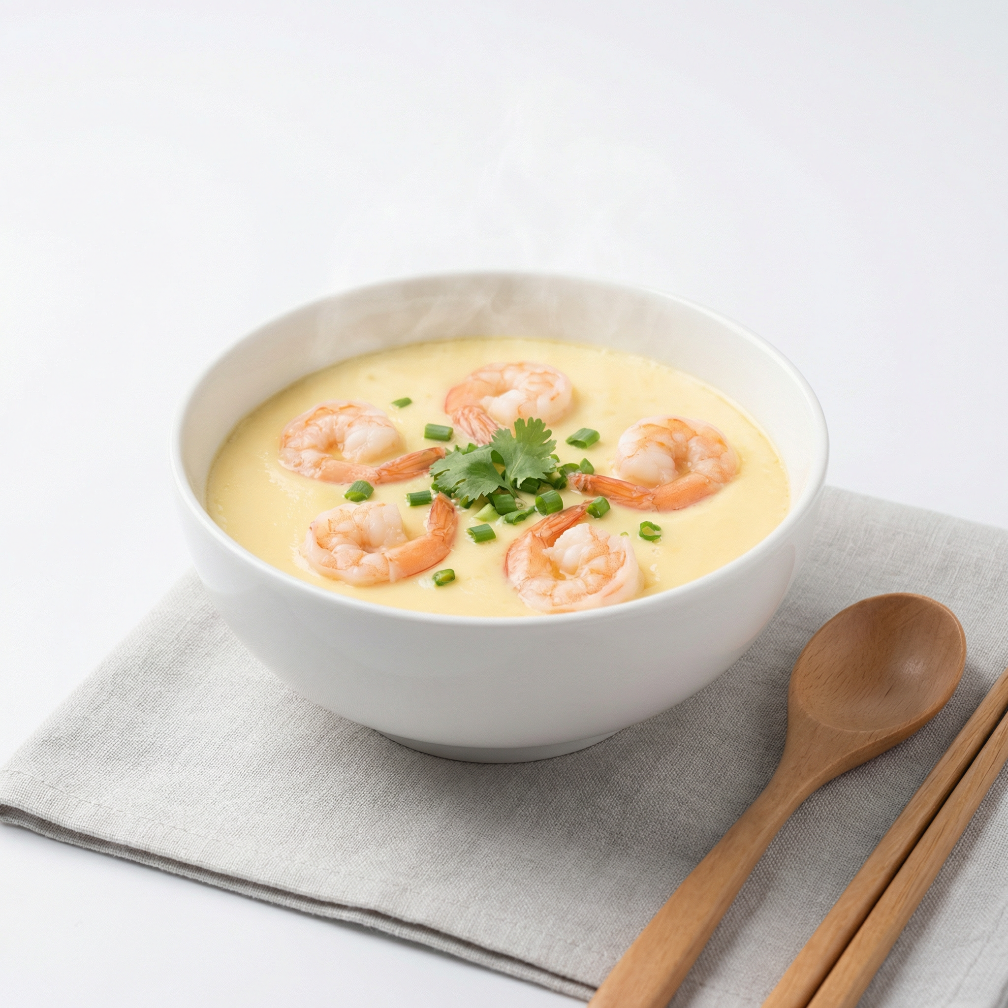 Steamed Egg with Shrimp. High-protein recipe with 17g protein, 170 calories. Silky steamed egg topped with shrimp for a light high-protein dish.