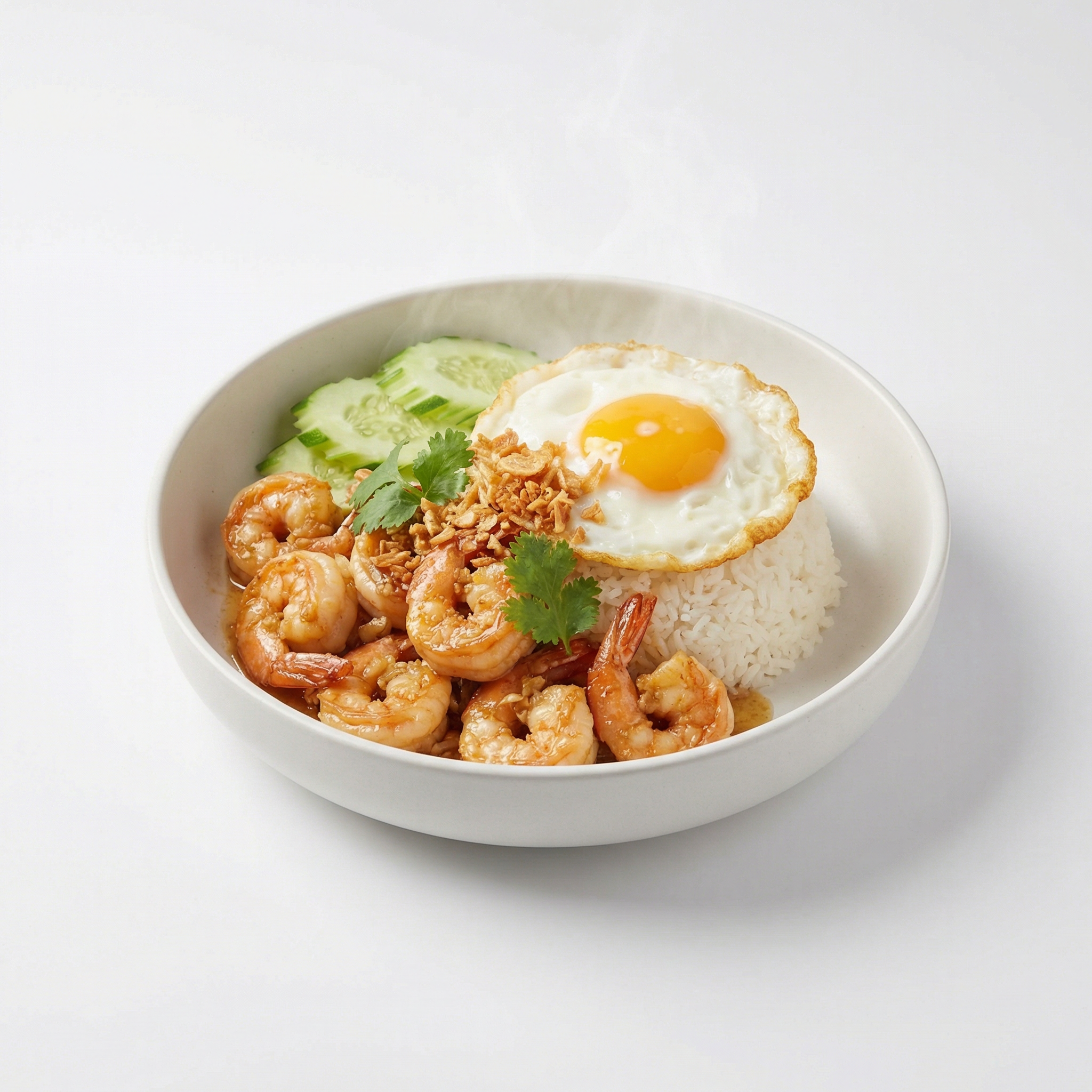 Garlic Shrimp Rice Bowl. High-protein recipe with 30g protein, ready in 18 minutes. A fast rice bowl topped with fragrant garlic shrimp.