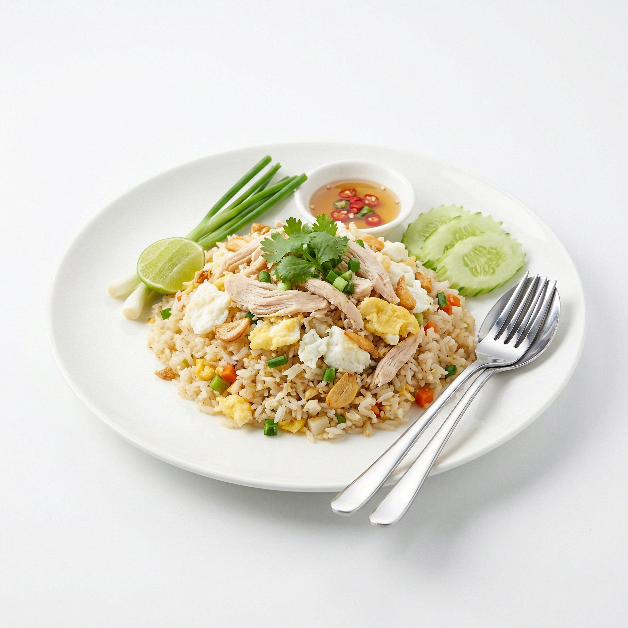 ข้าวผัดอกไก่ไข่ขาวสูตรนี้มีประมาณ 400 แคลอรี่ต่อเสิร์ฟ พร้อมโปรตีน 33 กรัม เหมาะกับคนคุมอาหารและอยากอิ่มนาน