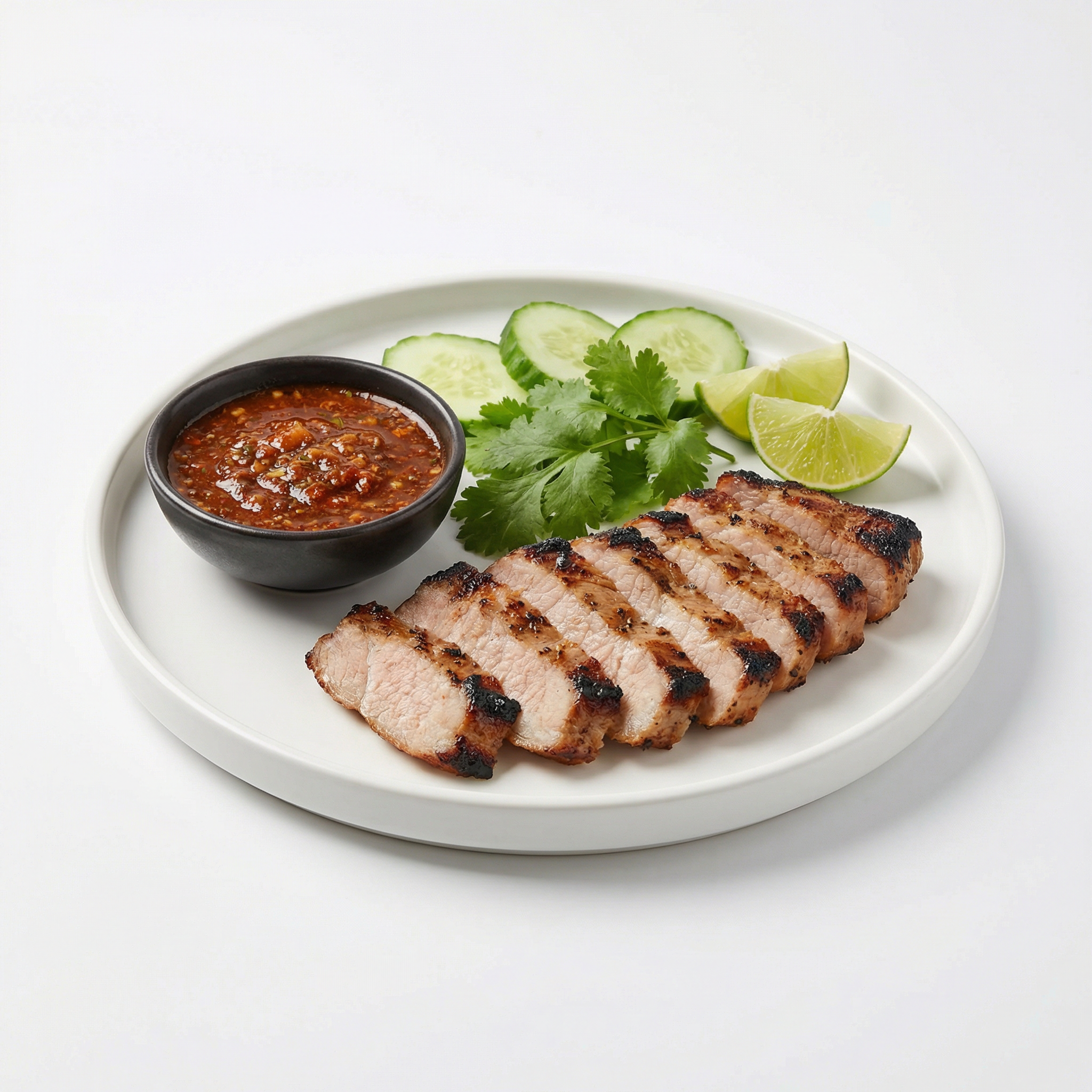 หมูย่างจิ้มแจ่วสูตรโปรตีนสูง โปรตีน 34 กรัม คาร์บต่ำ หมูย่างหอมๆ กับน้ำจิ้มแจ่วรสจัด เหมาะกับมื้อโปรตีนสูง
