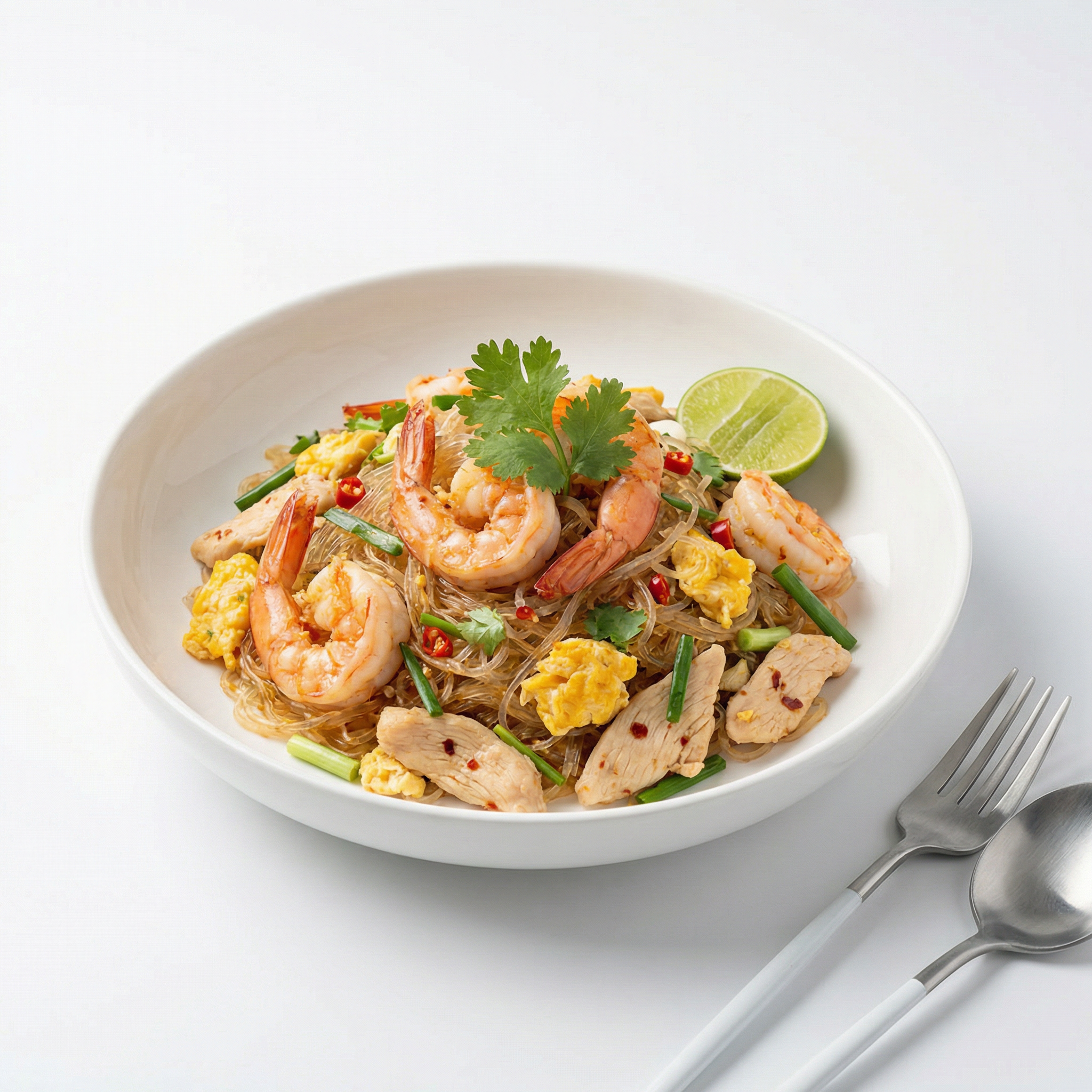 วุ้นเส้นผัดไข่กุ้งสูตรโปรตีนสูง โปรตีน 24 กรัม ทำง่ายใน 22 นาที วุ้นเส้นผัดไข่กับกุ้ง รสกลมกล่อมและทำง่ายกว่าเมนูเส้นหนักๆ
