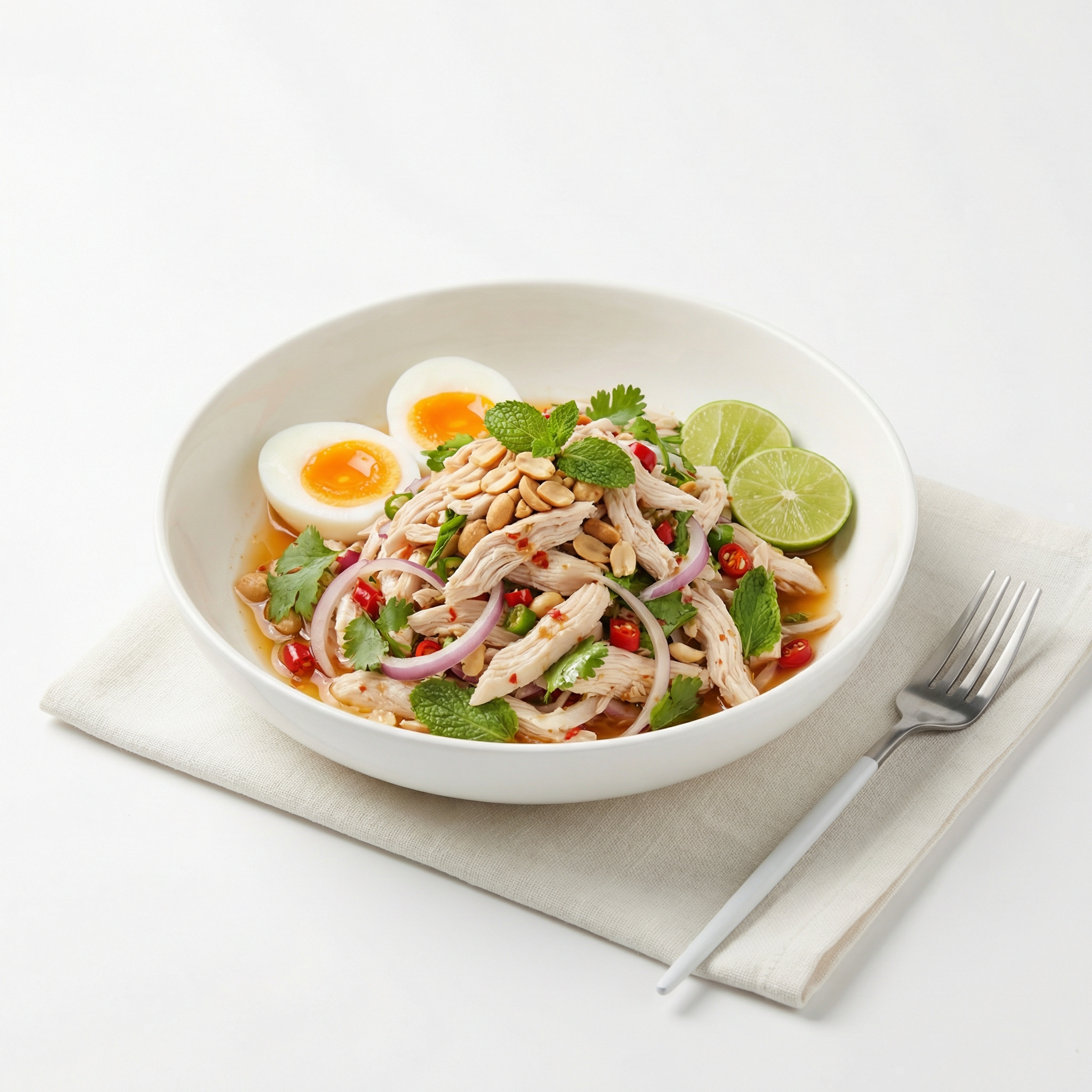 ยำอกไก่สูตรนี้มีประมาณ 210 แคลอรี่ต่อเสิร์ฟ พร้อมโปรตีน 32 กรัม เหมาะกับคนคุมอาหารและอยากอิ่มนาน