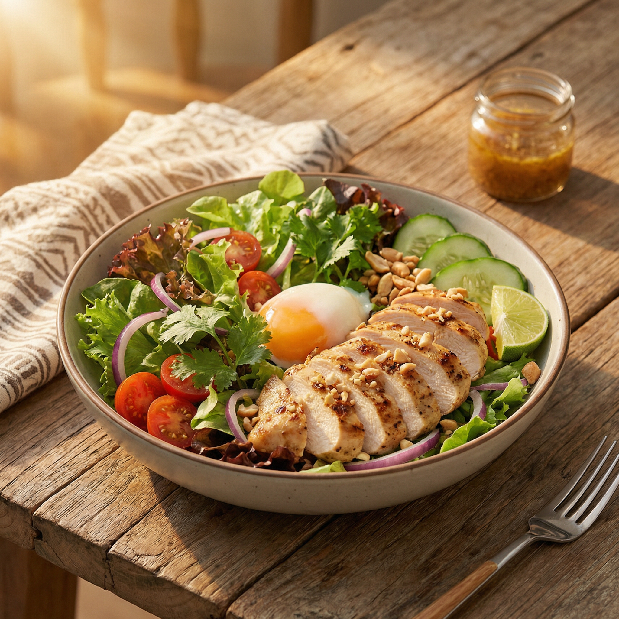 สลัดอกไก่สูตรลดน้ำหนัก โปรตีนสูง ไฟเบอร์เยอะ น้ำสลัดไขมันต่ำ อิ่มนานไม่หิวบ่อย เหมาะสำหรับมื้อกลางวันของคนลดน้ำหนัก