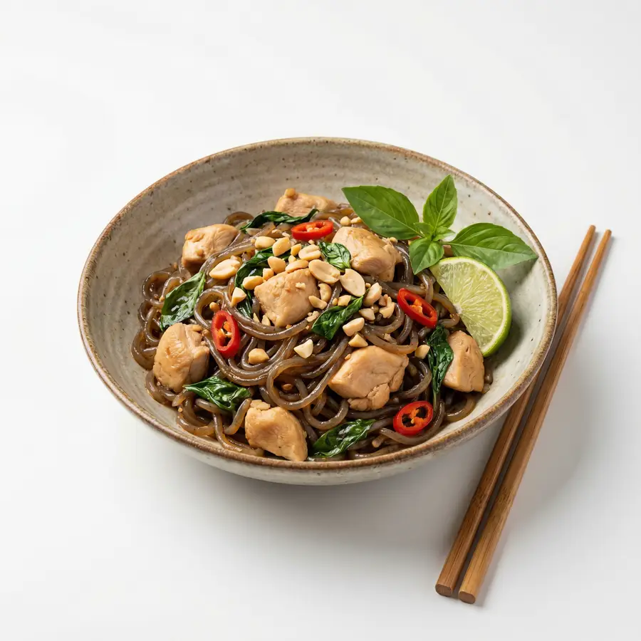 เส้นบุกผัดซอสกะเพราไก่เป็นสูตรคาร์บต่ำที่ทำตามได้จริง ให้พลังงานประมาณ 200 แคลอรี่ และโปรตีน 32 กรัมต่อเสิร์ฟ เหมาะกับคนที่อยากกินอร่อยพร้อมคุมเป้าหมายโภชนาการ