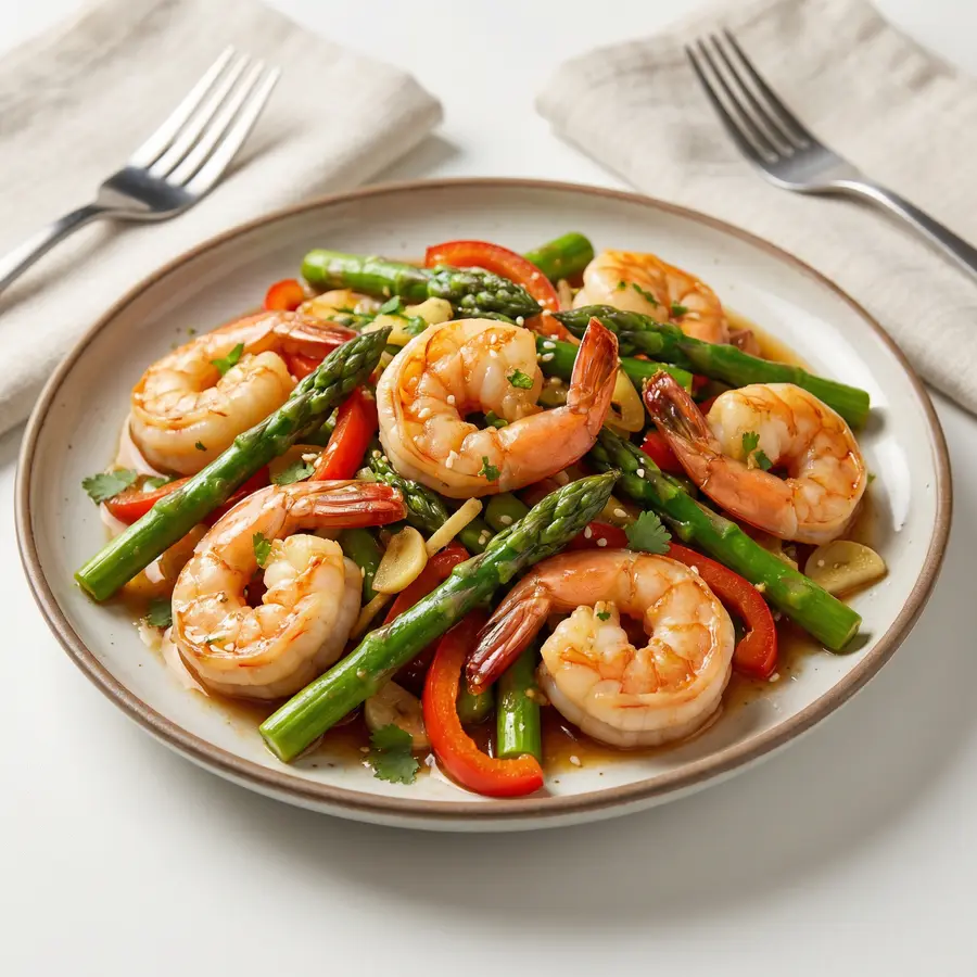 กุ้งผัดหน่อไม้ฝรั่งเป็นสูตรโปรตีนสูงที่ทำตามได้จริง ให้พลังงานประมาณ 200 แคลอรี่ และโปรตีน 31 กรัมต่อเสิร์ฟ เหมาะกับคนที่อยากกินอร่อยพร้อมคุมเป้าหมายโภชนาการ